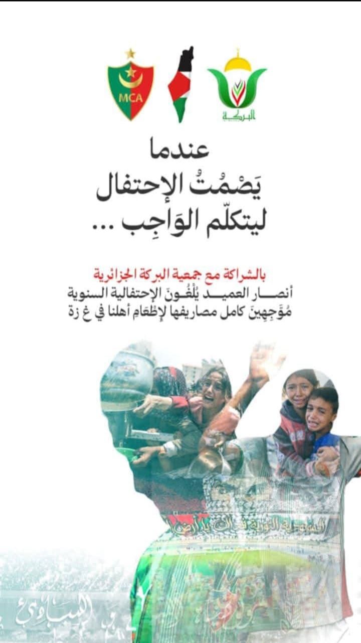 7 Août 2025 anniversaire du Mouloudia (104 ans) mobilisation générale par les supporteurs pour l'aide à Gaza et la Palestine
