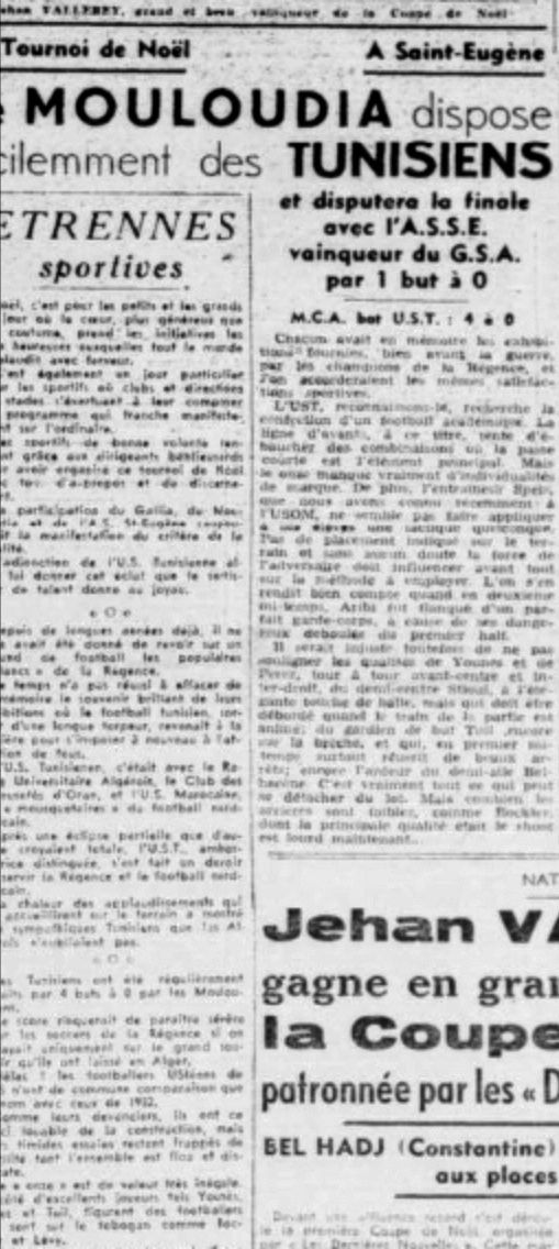 Dimanche 23 Décembre 1945 (et non septembre 1944) Tournoi de fin d'Année Amical à Saint-Eugéne 1/2 Finale : ASSE-Galia 1-0 et MCA-US Tunis 4-0
