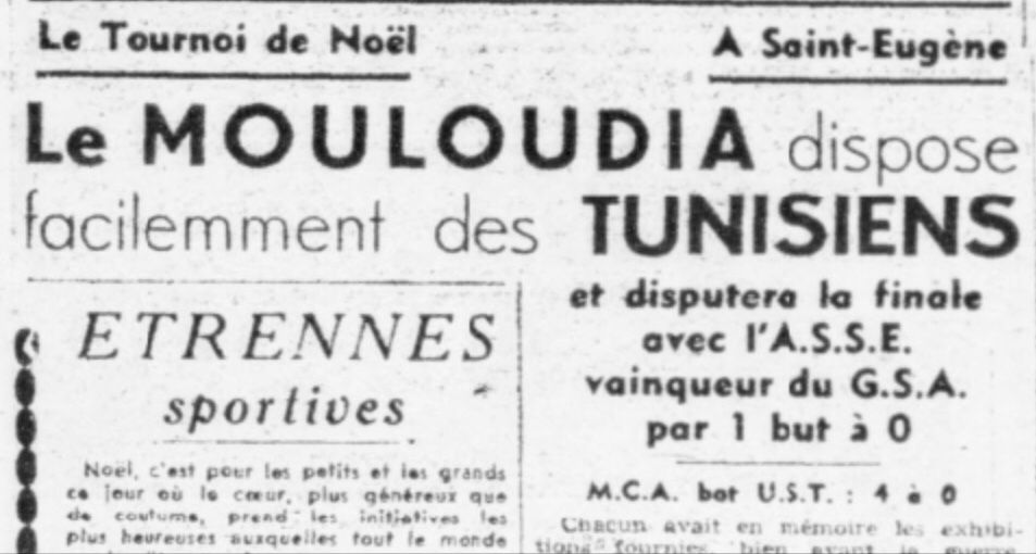 Dimanche 23 Décembre 1945 (et non septembre 1944) Tournoi de fin d'Année Amical à Saint-Eugéne 1/2 Finale : ASSE-Galia 1-0 et MCA-US Tunis 4-0