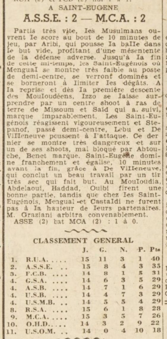 Dimanche 24.2.1946 au Stade de Saint-Eugène ASSE-MCA 2-2