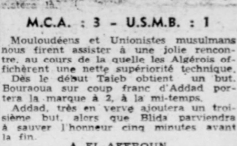 Dimanche 24.3.1946 à Blida USM Blida-MCA 1-3