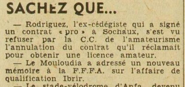 10.4.1946 Affaire Ibrir, le Mouloudia envoi un nouveau mémoire à la Fédération en attente de l'examination du Dossier par le Bureau fédéral