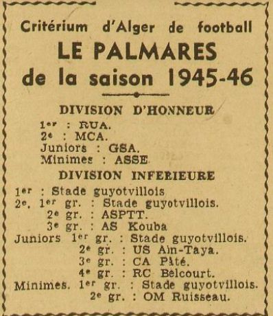 Dimanche 28.4.1946 MCA La Réserve Champion d'Alger