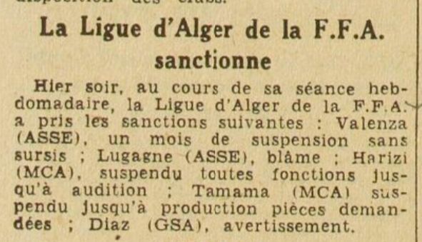 3.5.1946 suspensions de Harizi et de Tamama du MCA
