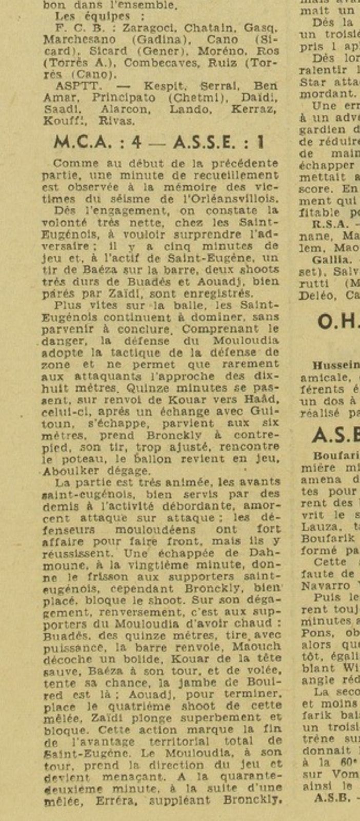 Dimanche 12.9.1954 au Stade de Saint-Eugène Amical " Coupe Milady" Finale MCA-ASSE 4-1