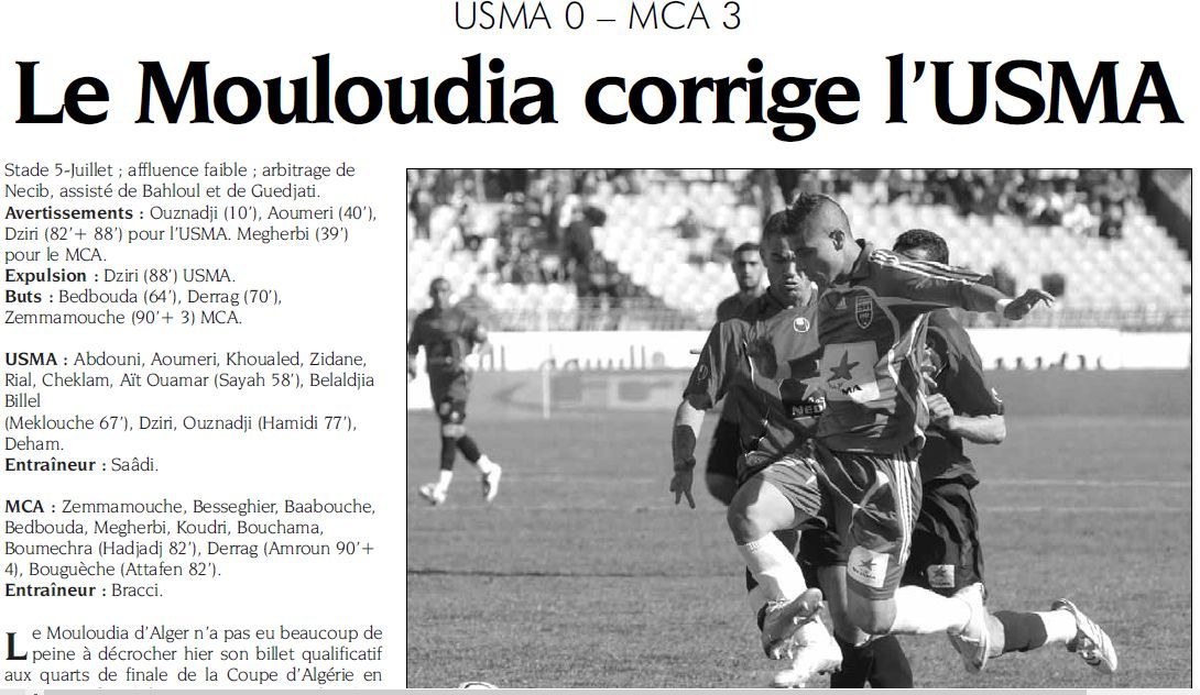 Mardi 16.3.2010 au Stade du "5 juillet 1962" 1/8ème Coupe d'Algérie USMA-MCA 0-3