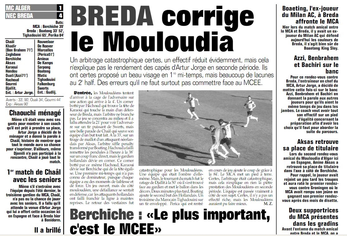 Vendredi 9.01.2015 à Benidorm NAC Breda (pays bas)-MCA 4-1