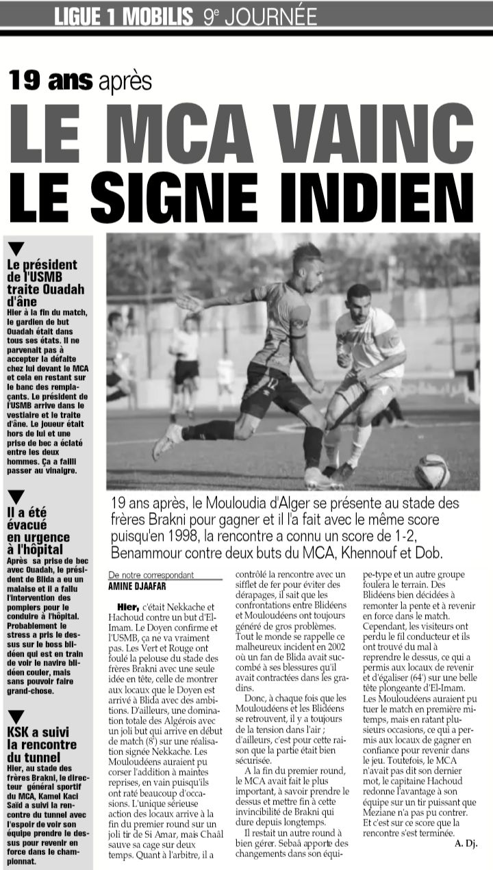 Samedi 28.10.2017 à Blida Stade des "Frères Brakni" USM Blida-MCA 1-2