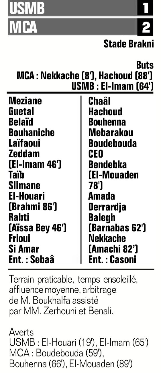 Samedi 28.10.2017 à Blida Stade des "Frères Brakni" USM Blida-MCA 1-2