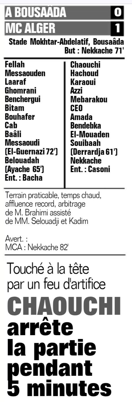 Samedi 13.1.2018 à Bousaâda Stade "Mokhtar Abdellatif" Coupe d'Algérie 1/8ème de Finale ASB (Amel Sportive de Bousaâda de la Ligue 2)-MCA 0-1