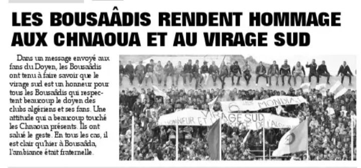 Samedi 13.1.2018 à Bousaâda Stade "Mokhtar Abdellatif" Coupe d'Algérie 1/8ème de Finale ASB (Amel Sportive de Bousaâda de la Ligue 2)-MCA 0-1, l'hospitalité des supporters de Bousaâda