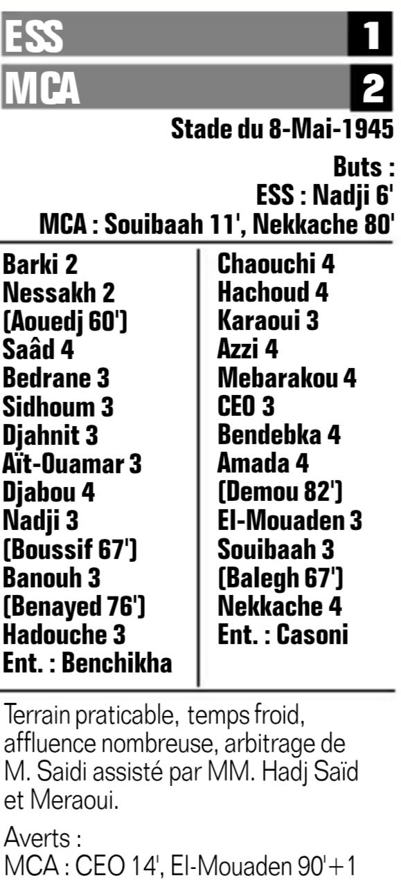 Samedi 20.01.2018 à Sétif Stade du "8 Mai 1945" ES Sétif-MCA 1-2