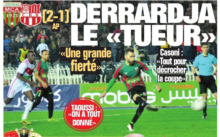 Jeudi 1.2.2018 au Stade du "5 juillet 1962" Coupe d'Algérie 1/8ème de Finale MCA-CRB 2-1 Après Prolongations