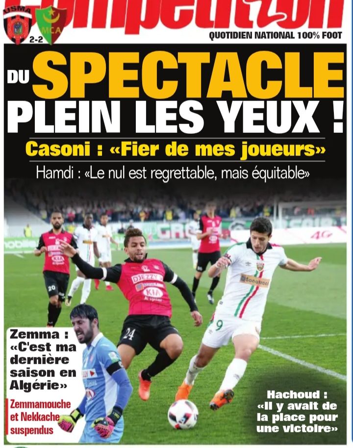 Samedi 24.2.2018 au Stade du '5 juillet 1962" USMA-MCA 2-2