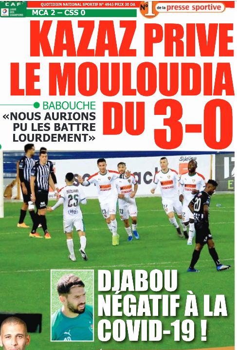 Lundi 28.12.2020 au Stade du "5 juillet 1962" à Huis-Clos à 20h45 Ligue des Champions Africaine 2ème Tour préliminaire Aller MCA-CS Sfax (Tunisie) 2-0