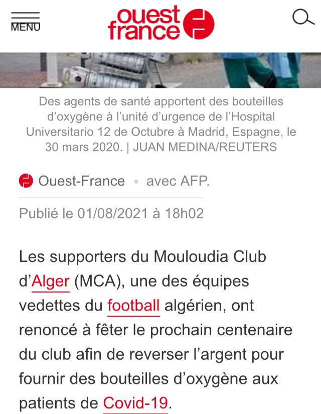 Centenaire du Doyen 7 Août 2021 : Cent ans Mouloudia sous le signe de la solidarité " pas de fumigène mais que de l’oxygène "