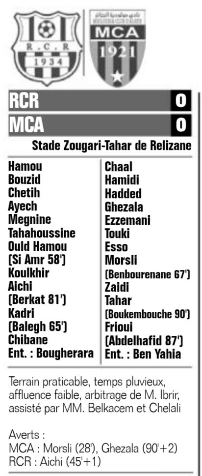 Samedi 20.11.2021 à Relizane Stade "Tahar Zougari" RC Relizane-MCA 0-0