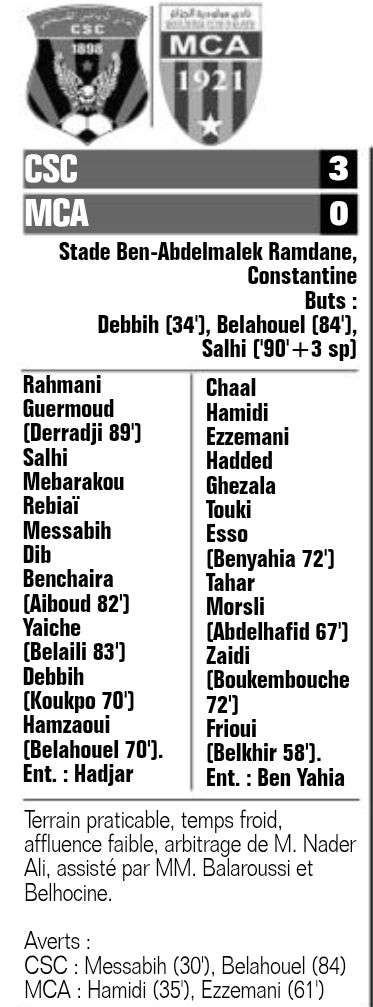 Jeudi 25.11.2021 à Constantine Stade "Benabdelmalek Ramdane" CS Constantine-MCA 3-0
