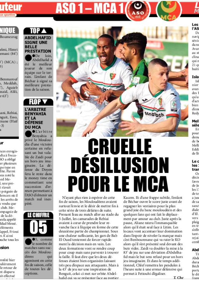 Samedi 4.6.2022 à Chlef Stade "Mohamed Boumezrag" ASO Chlef-MCA 1-1
