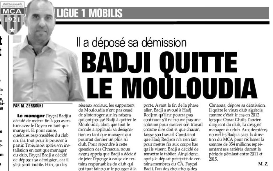 Le 5.1.2023 le Coordinateur Général Badji Fayçal Démissionne (renouvelle sa démission une seconde fois le 9.1.2023)