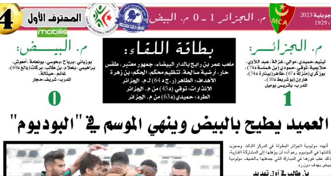 Samedi 15.7.2023 à Dar El Beida Stade du "Omar Benrabah" MCA-MC El Bayadh 1-0