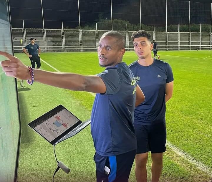 Samedi 4 10.2025 à Douéra MCA - Mokwena avec le nouveau venu El Nahhas Said du Ahly du Caire , nouveau analyste Vidéo et traducteur du Mouloudia