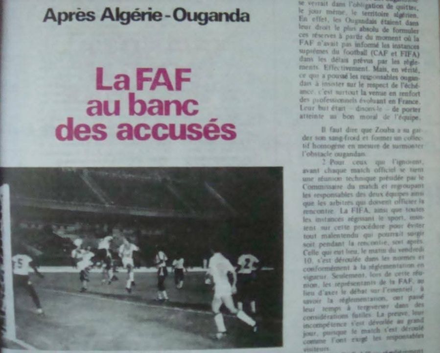 10.6.1983 au Stade du "5 juillet 1962" EN-Ouganda 3-0 la bourde de la FAF
