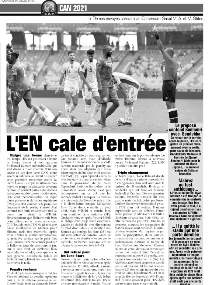 11.1.2022 CAN EN-Sierra-Leone 0-0 (Bendebka ex MCA, rentre en jeu à la 64')