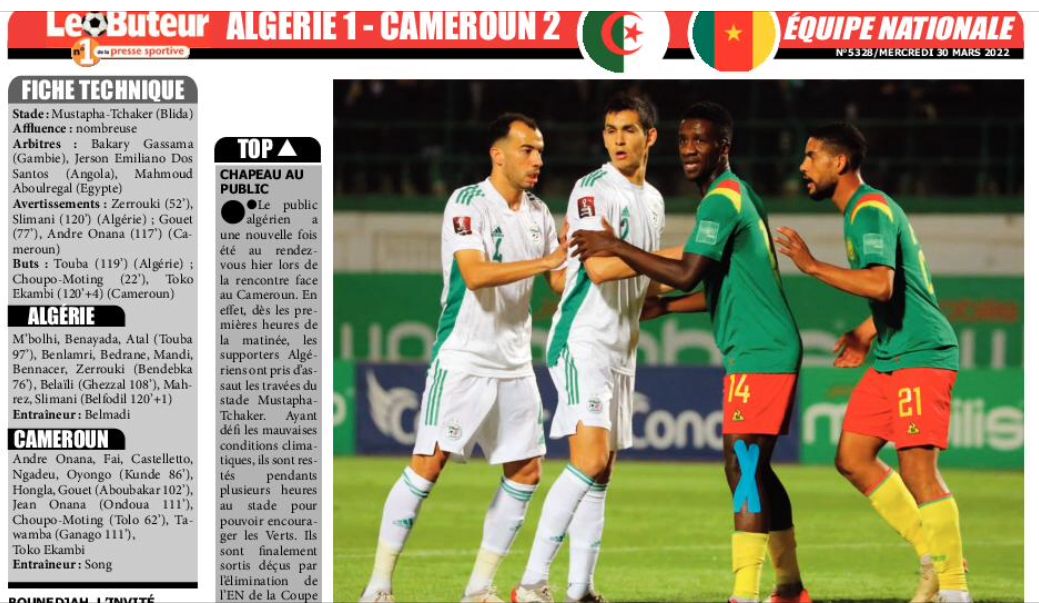 Mardi 29.3.2022 qualification Retour pour la Coupe du Monde au Qatar, élimination de l'EN (avec les ex Mouloudéens Bendebka Sofiane et Benhamou Mohamed l'entraîneur des Gardiens de But) par le Cameroun 1-2 après prolongations