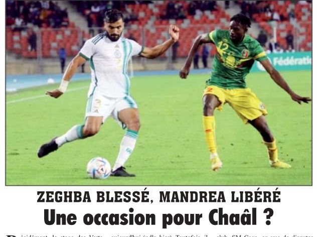 Mardi 15.11.2022 Chaâl Farid convoqué en EN "A" par Belmadi pour les 2 matchs de préparation le 16 Novembre à Oran contre le Mali (1-1 Chaâl sur le Banc)