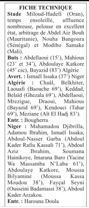 Mardi 31.1.2023 à Oran Stade "Miloud Hadefi" 1/2 Finale EN A'-Niger 5-0 Abdellaoui Ayoub Capitaine Titulaire et Buteur, Chaâl Titulaire, Ghezala et Tahar rentrent à la 65', Debbih Blessé)