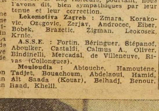 Lundi 1.11.1948 au Stade Municipal Sélection d'Alger - Tunis 1-3 Hamoutène et Abdelaoui MCA Titulaires / Maroc-Oran 5-1 (Maroc vainqueur du Tournoi des Ligues)