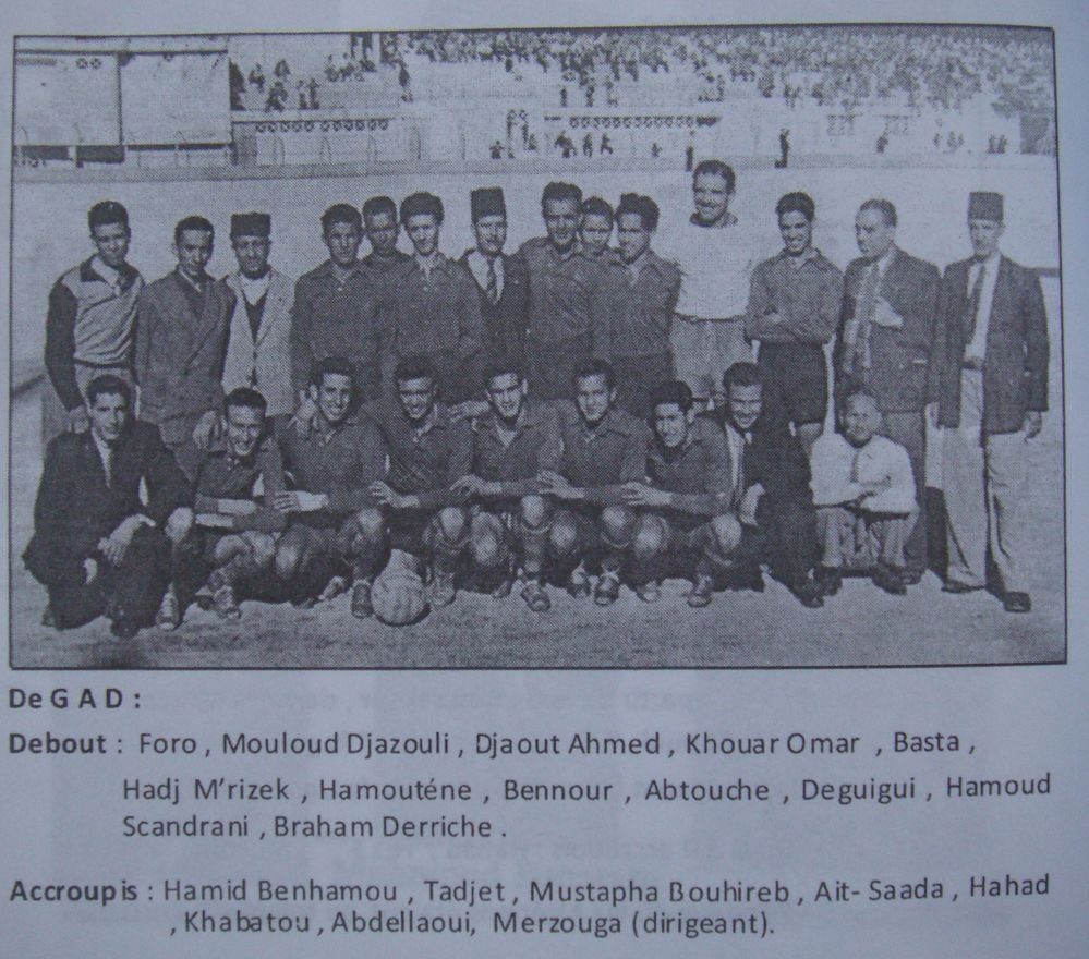 Abtouche Mansour "Ali", Bachet Benaissa (de Retour de Tunisie après un essai à la fin de la saison passée), Belahcène M'hamed, Yousfi Ali, Mouloud (Jeune promu) (G.B)