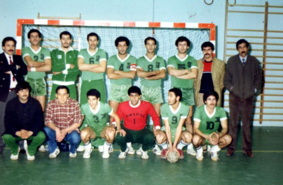 Labane Tahar (Istres France puis Aix-en-Provence), Lamali Sofiane (Angers, France), Gaga Mohamed (HB Gien Loiret, France), Bouziane Mohamed (HB Gien Loiret, France), Haci (HB Gien Loiret, France), Bouanani Abdeldjalil (La Rochelle, France), Mellouk Lahouari (Rodez, France), Aouachria Redouane (Aurillac, France), Manseur (Aurillac, France), Ali Kaci (La Roche-sur-Yon VHB, Villeneuve-d'Ascq, El Makarm El Mahdia, Carabiniers Montigny, Aix UC, Aurillac, France), Bouanik Mahmoud (Villeneuve-d'Ascq, France), Aouachria Redouane (la Roche-sur-Yon, Villeneuve-d'Ascq, Makarem El Mahdia, Montigny, Aix UC, Aurillac HB)), Abbès Salim Sofiane (Villefranche Handball), Saidi Redouane (Arabie Saoudite puis ES Sahel puis France), El Maouhab Karim (El Mahdia Tunisie, CB Cangas en Espagne, US Saintes joueur puis Entraineur, France), Ghoumal Khaled ( Girondins de Bordeaux HBC puis Billère Handball puis Bruges en Gironde puis Limoges Handball 87, France), Filah Belgacem (Paris Handball, France puis Al Nasr Dubaï, puis Valence Handball, France ), Biloum Elhadi (Chambéry, France), Hasni Achour (Djendouba, Tunisie), Saidi Redouane (Etoile du Sahel, Tunisie puis Châteauneuf puis Salon de Provence, France), Hamad Abderazak (Aix-en-Provence), Yahia Sid Ali (Aix-en-Provence), Berkous Messaoud (Al Qurain du Koweït, Al Sadd du Qatar, Zamalek SC, Sakiet Ezzit de Tunis), Slahdji Abdelmalek (Al Qurain du Koweit, Al Duhail du Qatar), Ghedbane Khalifa (2018 AX Puente de Genil de Gijon en Espagne)